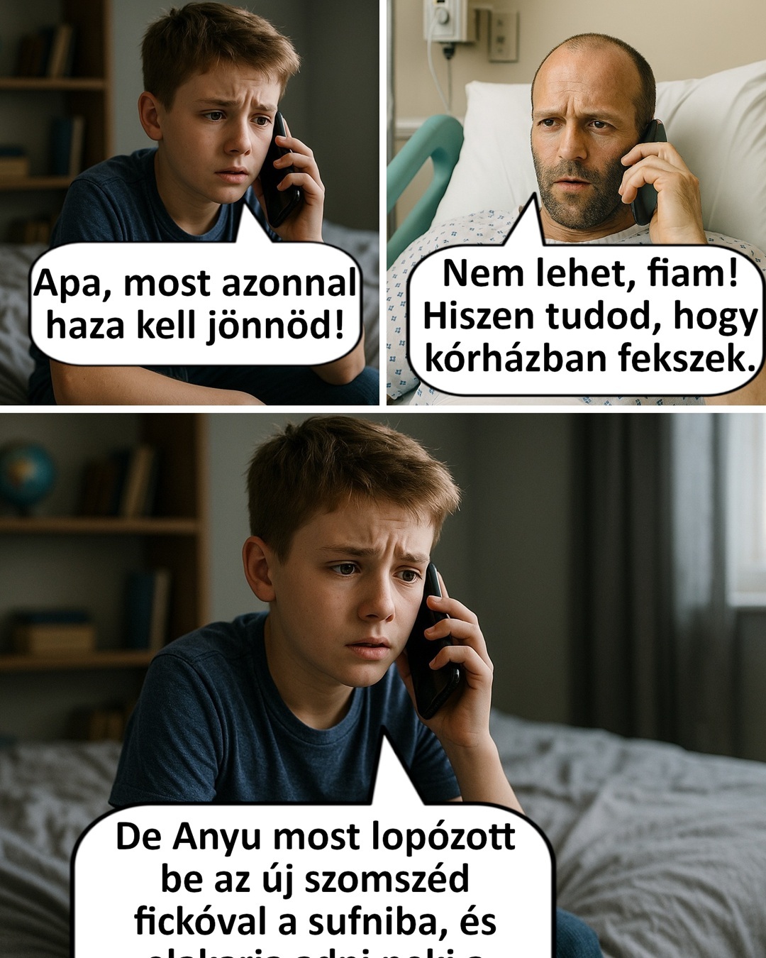 2. Ugyan azt nem tudjuk, hogy az apa milyen problémával feküdt a kórházban, de az biztos, hogy a fia szavai hatására hamar kilábalt belőle.