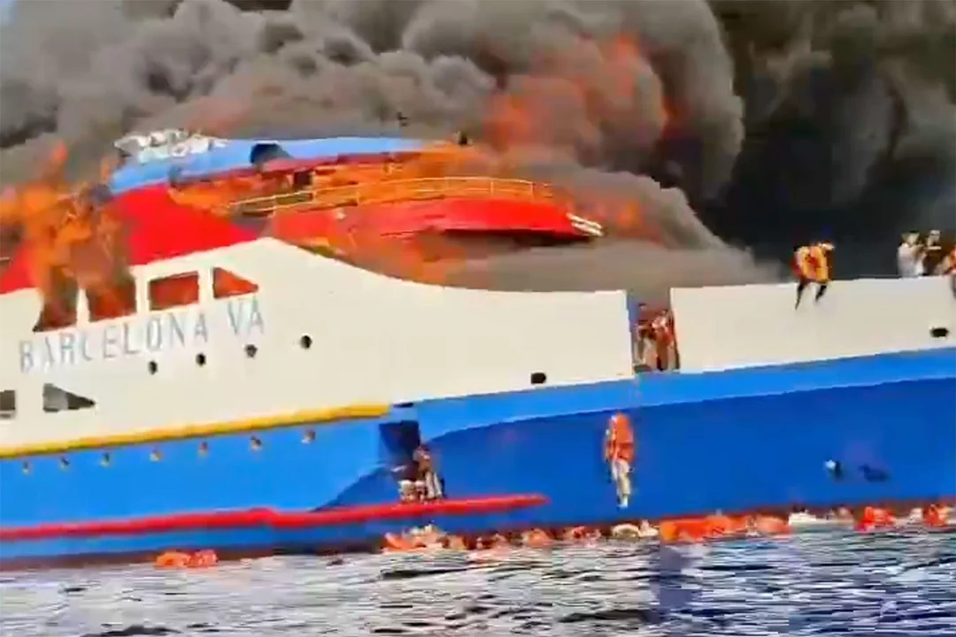 A helyszínen készült megrázó videón jól látszik, ahogy utasok tucatjai ugrálnak a tengerbe – sokan mentőmellény nélkül, pusztán a túlélés reményében. A felvételeken az is látható, ahogy a sűrű füst ellepi a hajó fedélzetét, és az emberek egymást segítve próbálnak elmenekülni a forróságból.